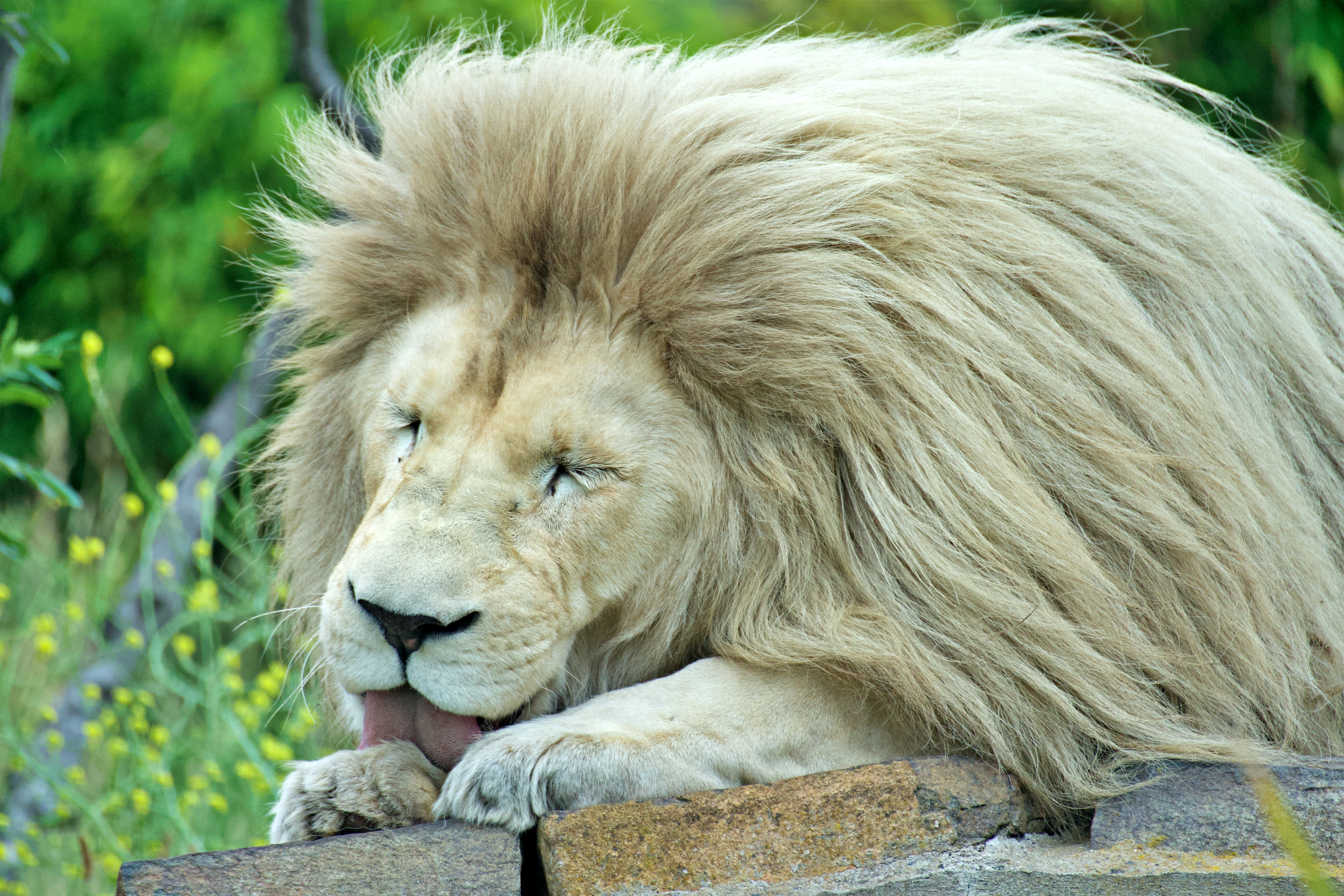 On hot days, our lions enjoy icy blocks with raw meat or fish hidden inside—keeping them refreshed while encouraging them to use their teeth, claws, and smarts. -